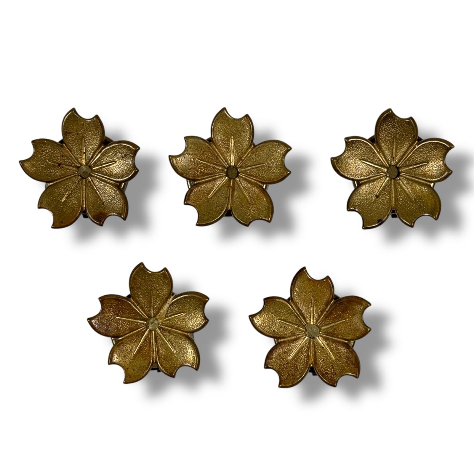 c.1950s Japanese Brass Cherry Blossom Hana-Buton Kimono Button Covers Lot of 5