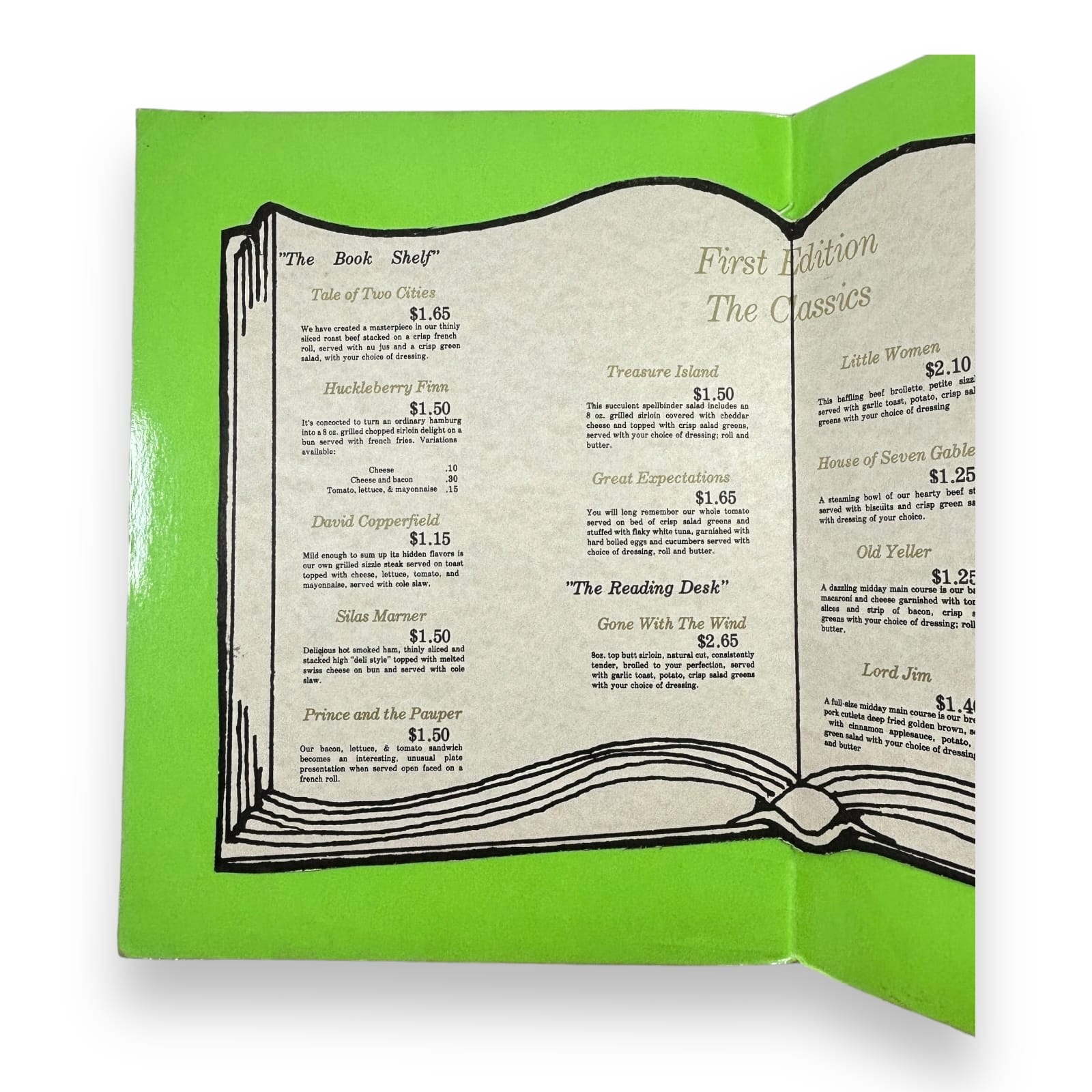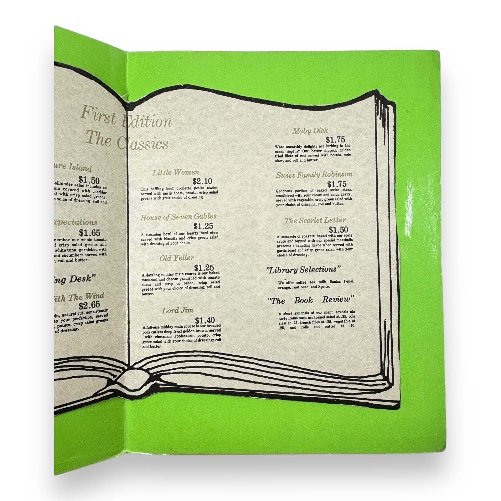 This lot is a 1970s printed restaurant menu from the The Golden Skillet, which was the Kent Skills Center restaurant in Grand Rapids, Michigan. Skills center students received real-life experience working in a full-scale dining environment. This four-panel folded card stock menu is constructed of a laminated cover in which a second folded sheet with the actual menu was glued. The menu is approximately 12″ tall by 9.5″ wide.