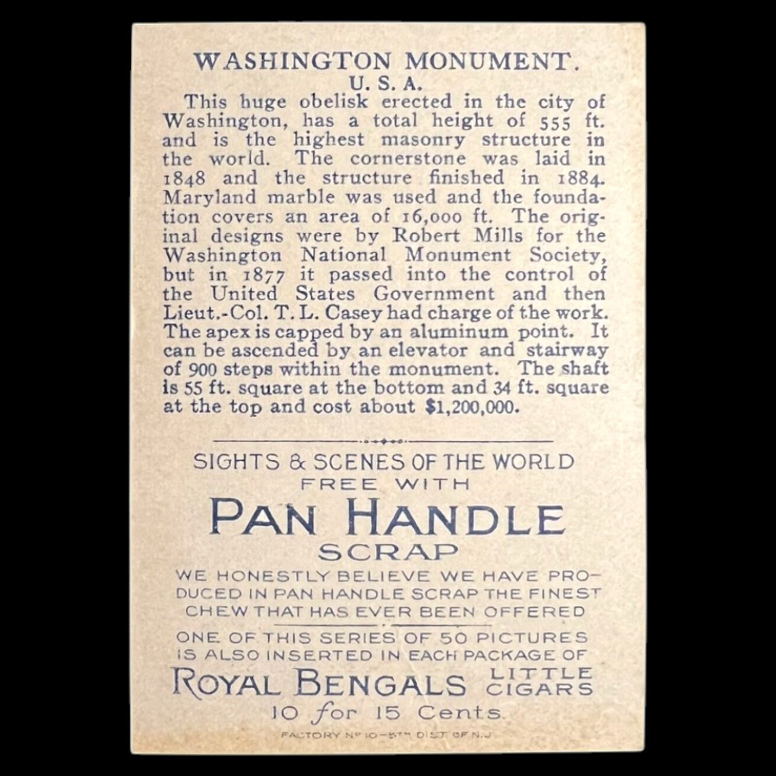 1911 Pan Handle Scrap Washington Monument Sights and Scenes Series Tobacco Card