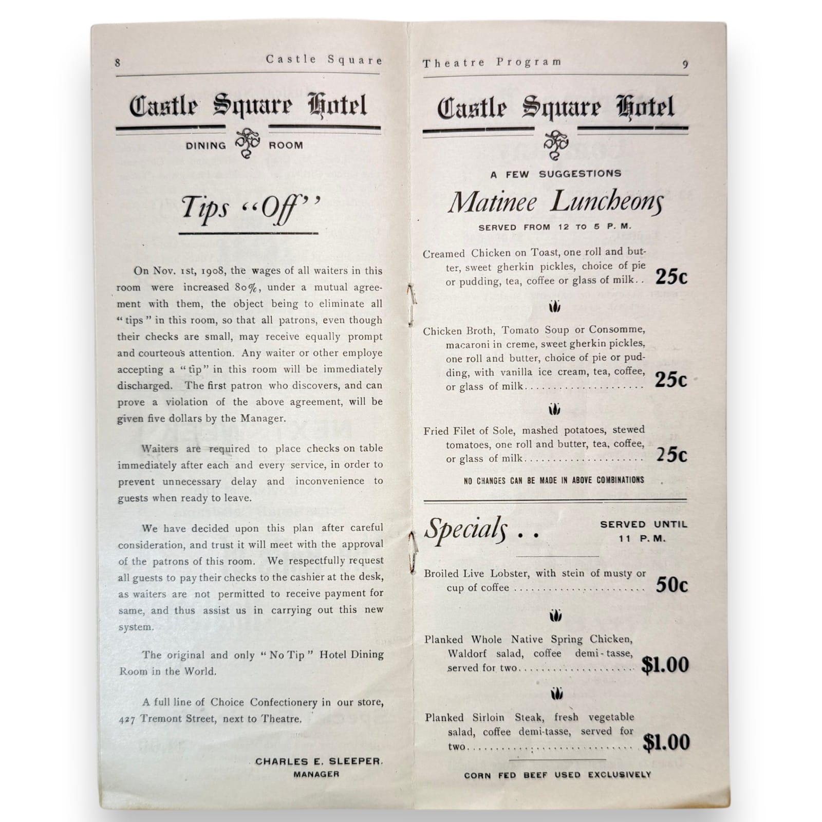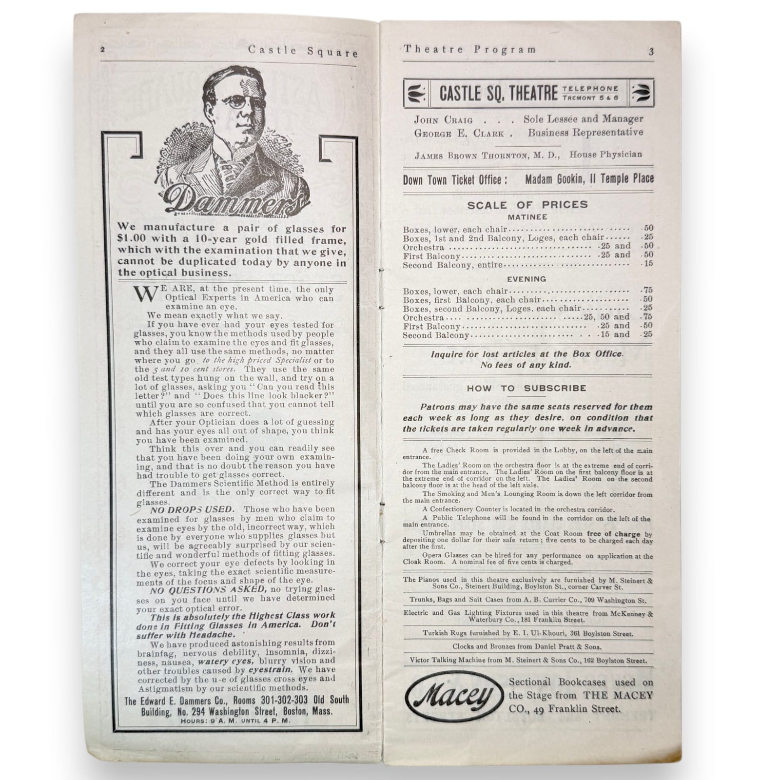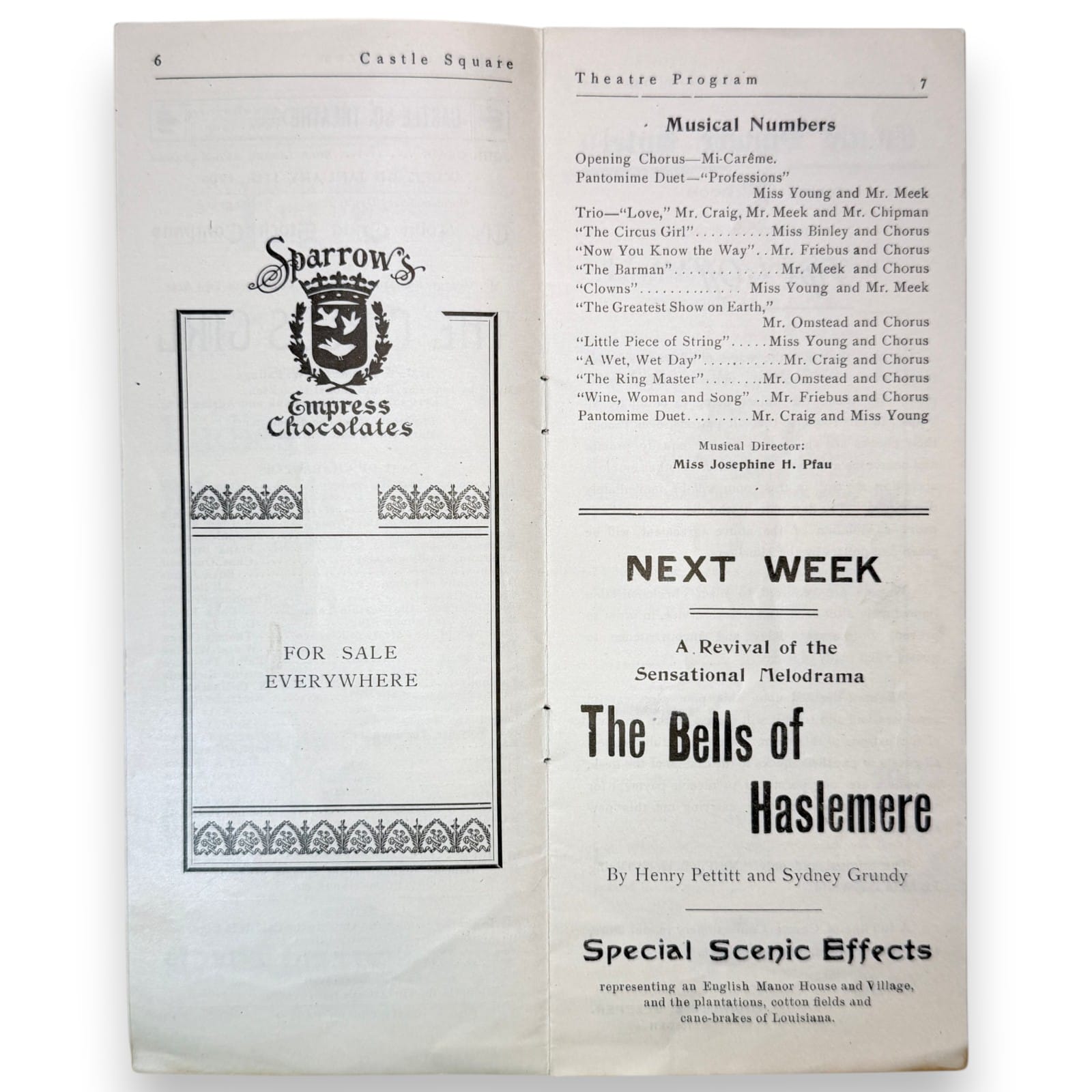 – Original 1908-1909 season Castle Square Theatre program