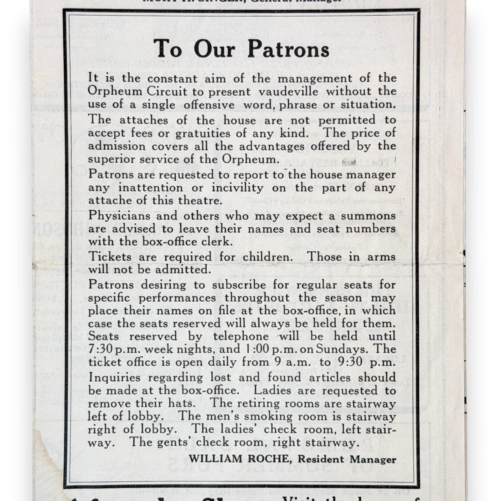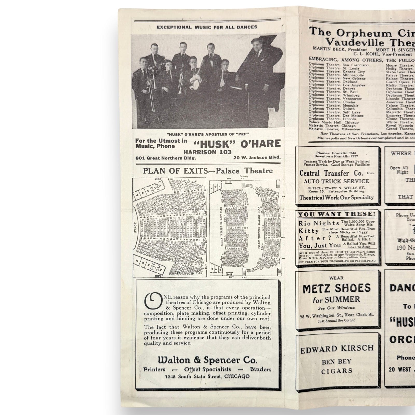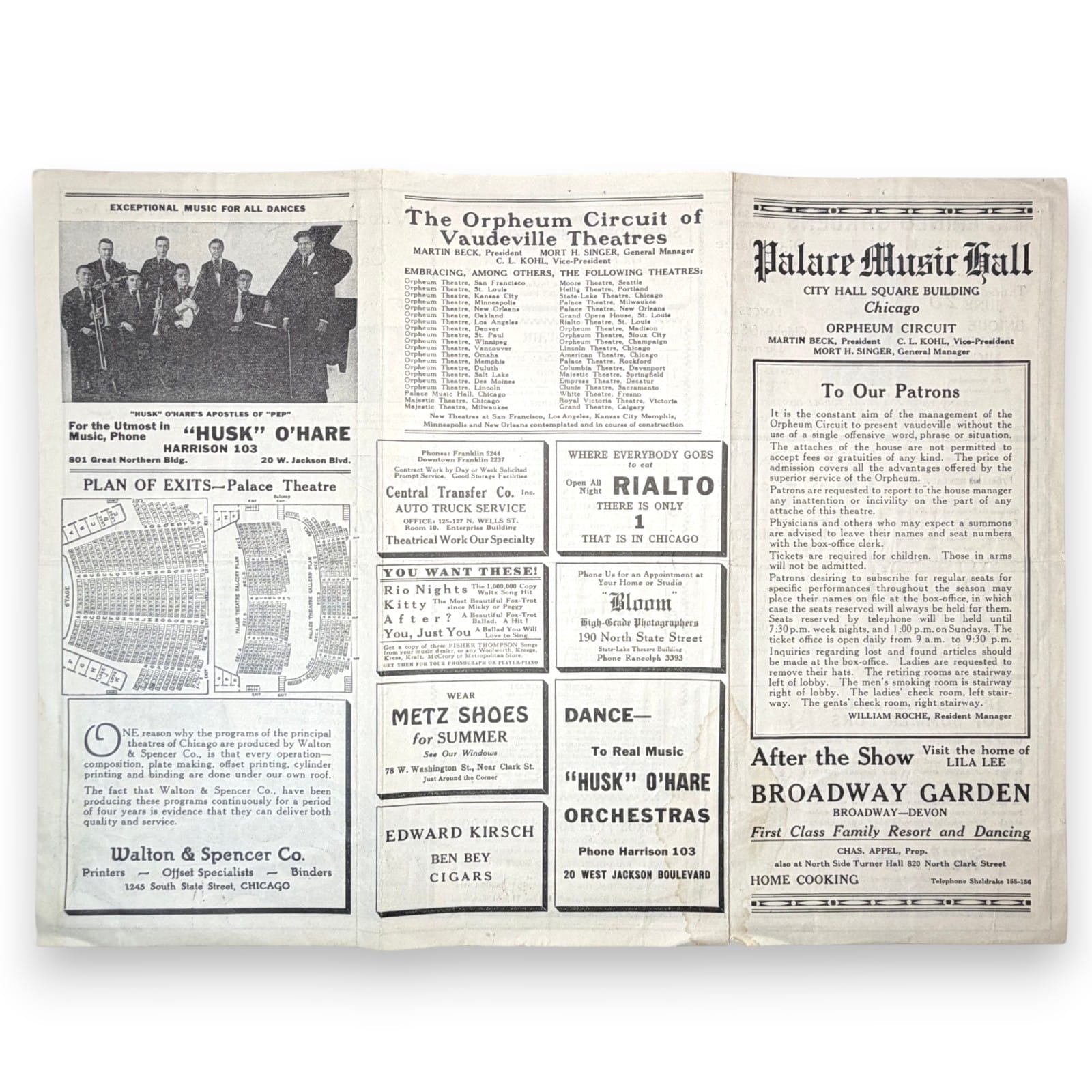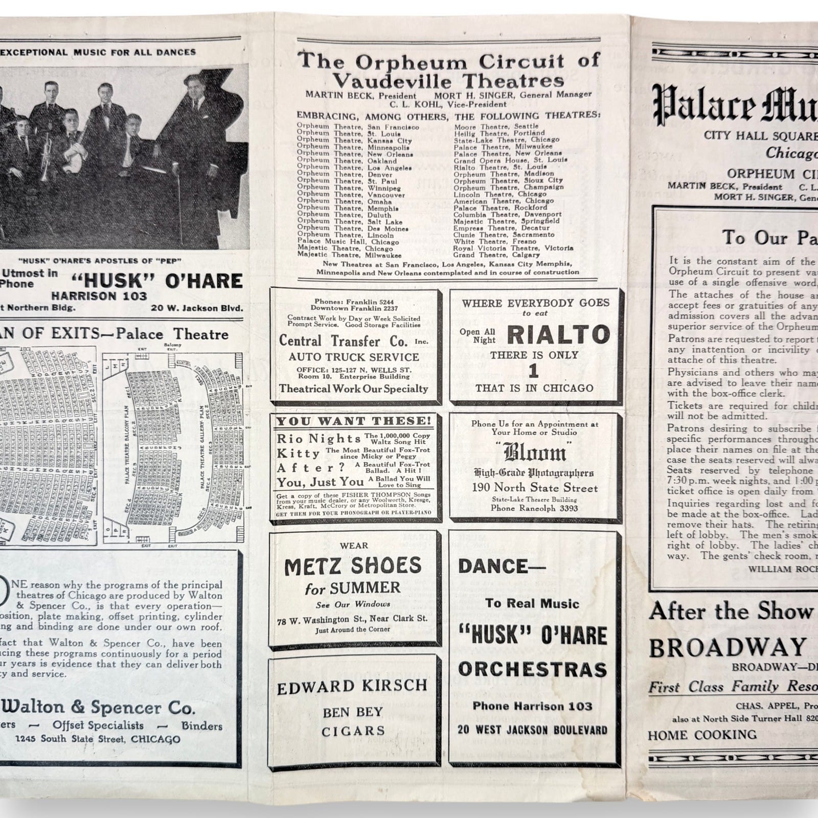 – Original Palace Music Hall Chicago Orpheum Circuit tri-fold program