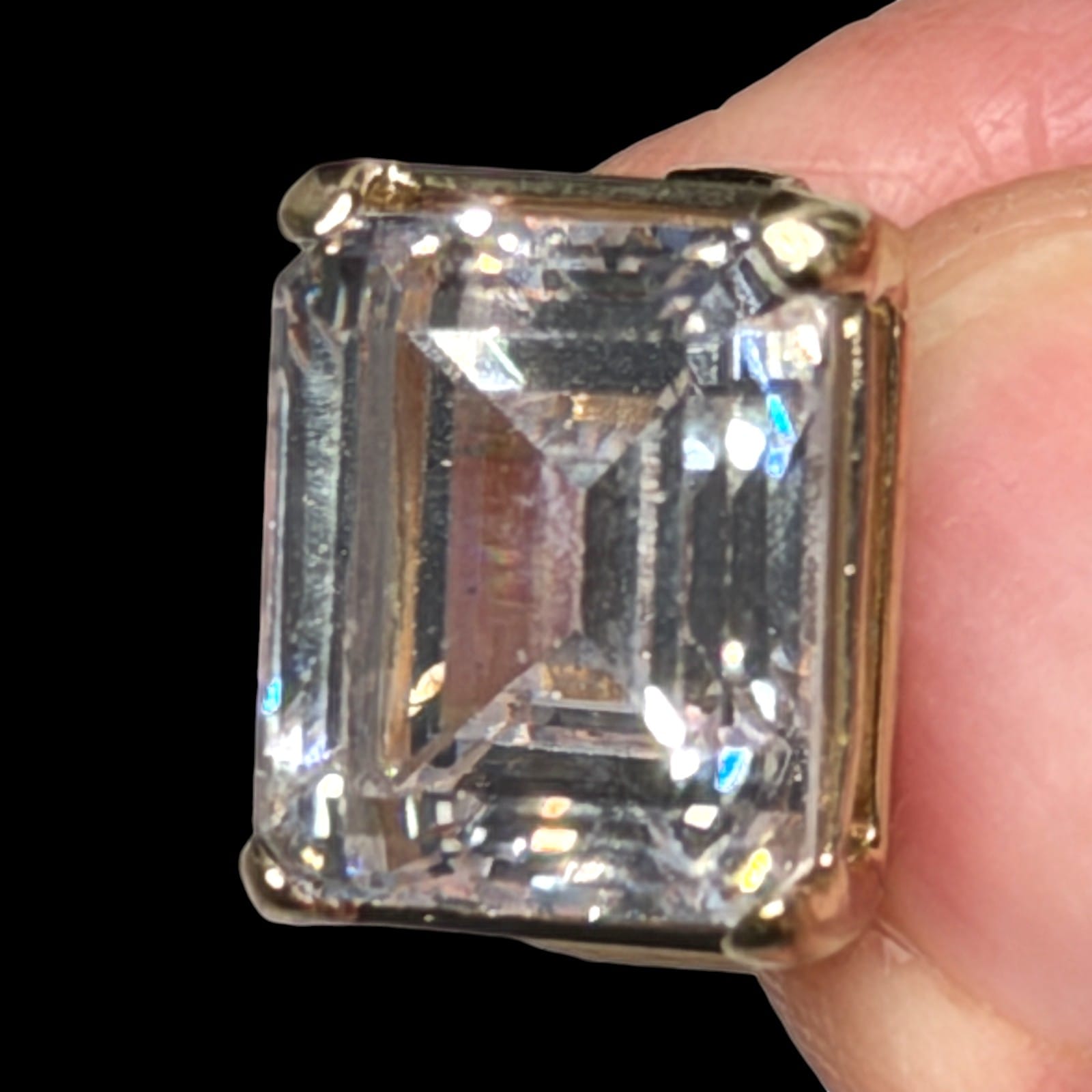 – Unmarked gold-tone setting with clear faceted glass crystals