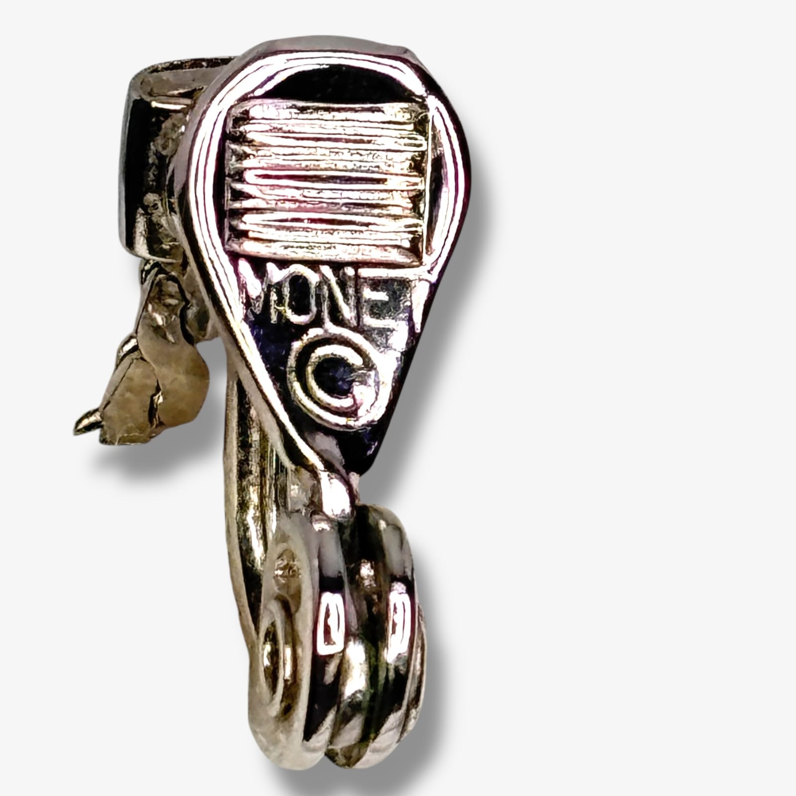These c.1970s Monet silver-tone clip-on earrings feature a twisted chain loop that forms a freely moving dangle design with the classic Monet signature on the clip back.