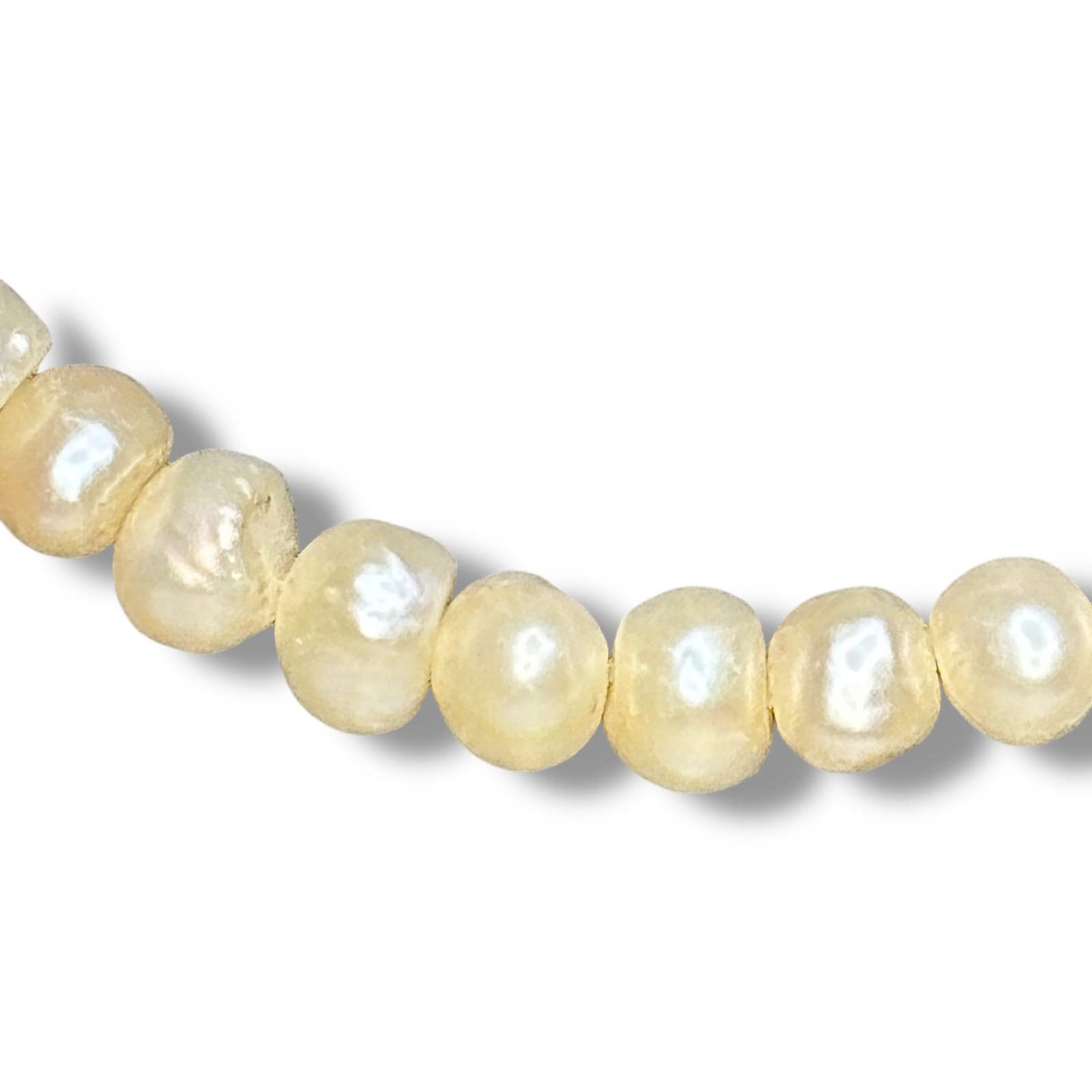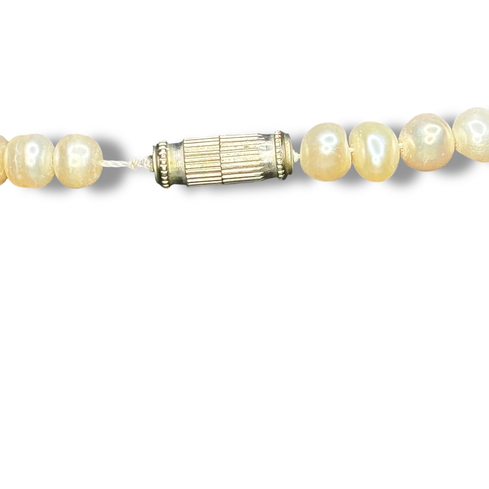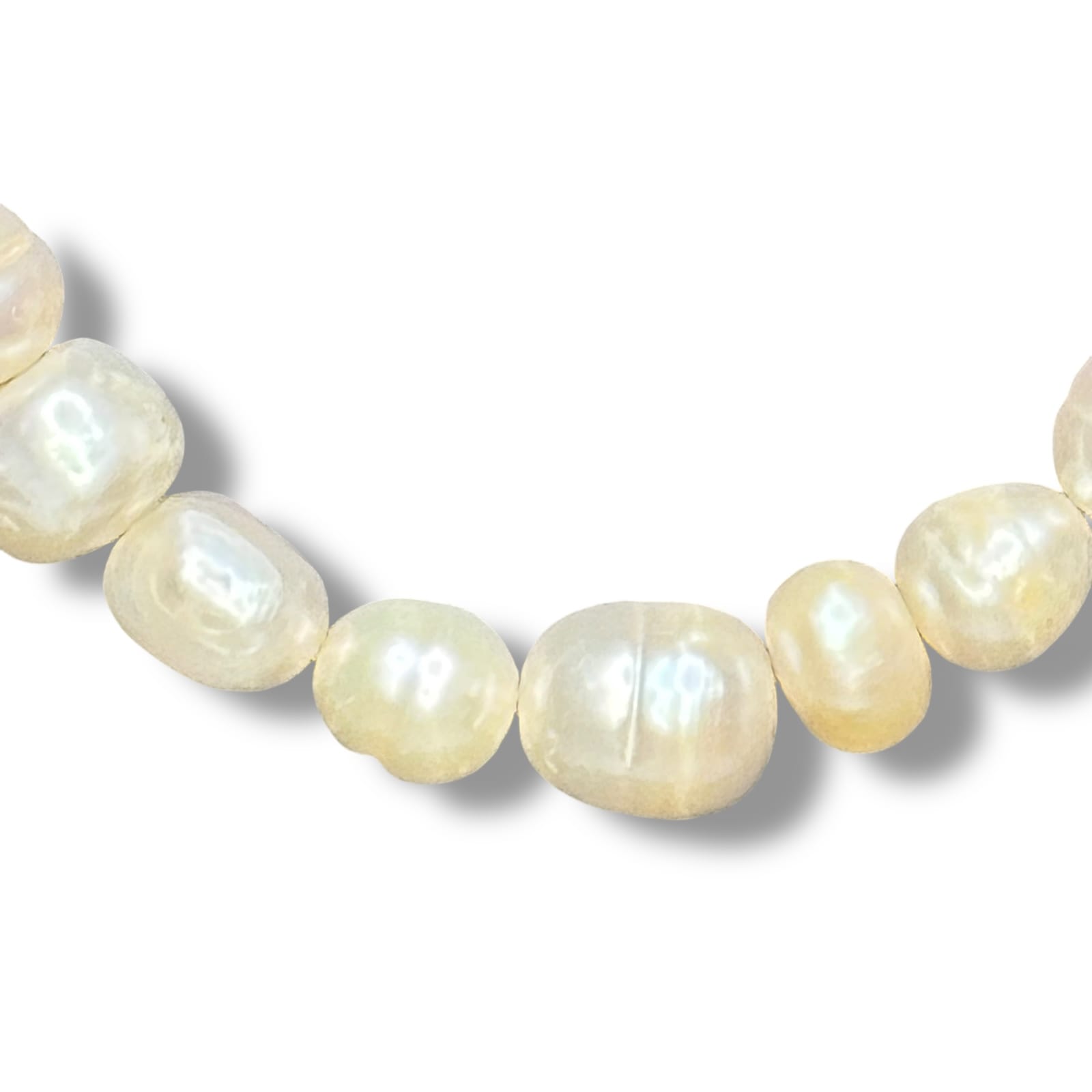 c.1980s Freshwater Pearl Necklace and Bracelet Set Cream White Barrel Clasp