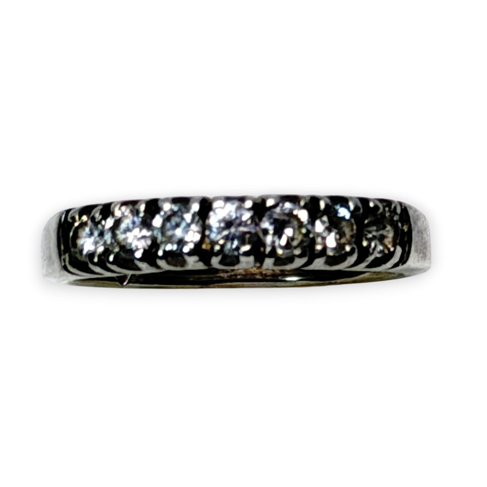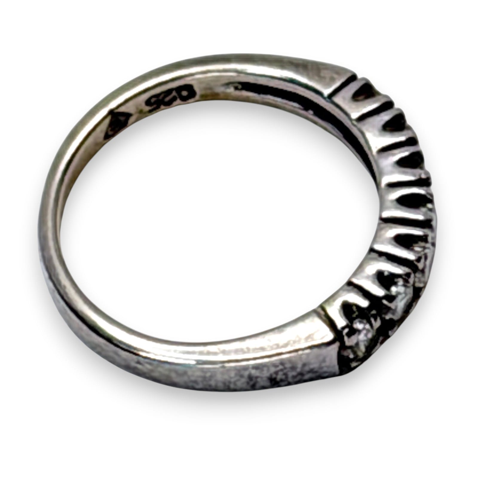 1990s Sterling Silver Glass Rhinestone Band Ring Size 4.75 925 F Diamond Mark